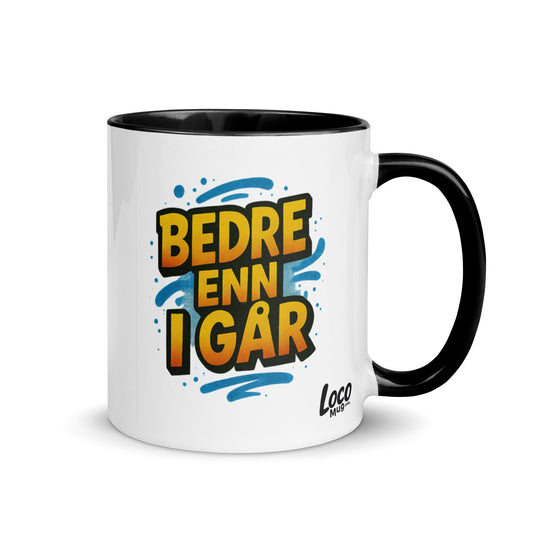 “Bedre enn i går” Mug with Color Inside– Norwegian Calm, Daily Power