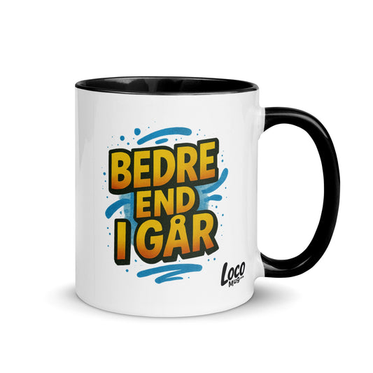 “Bedre end i går” Mug with Color Inside – Danish Progress, One Sip at a Time